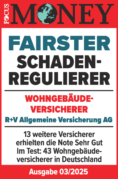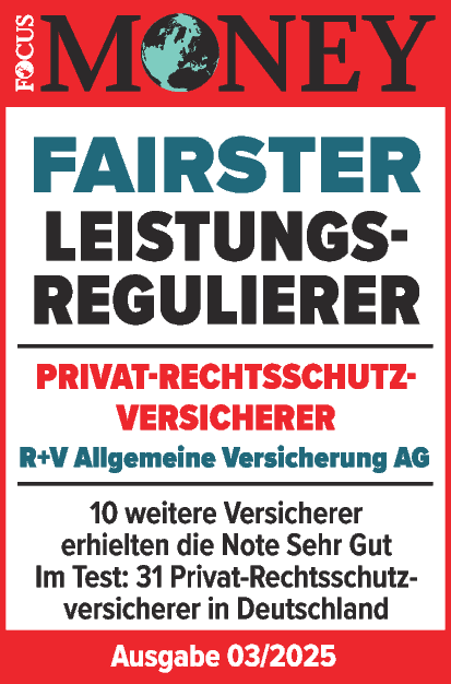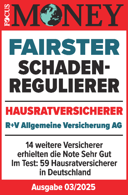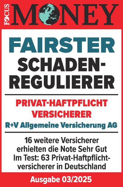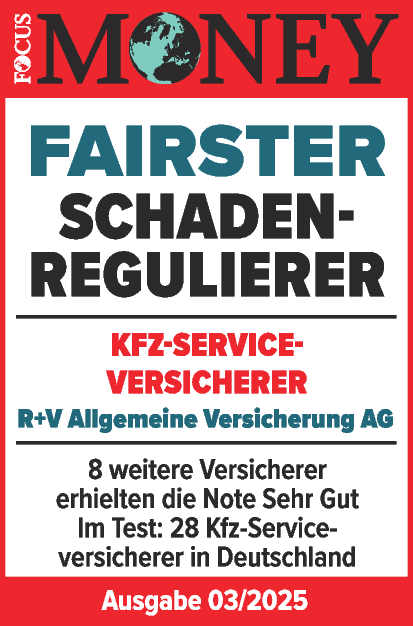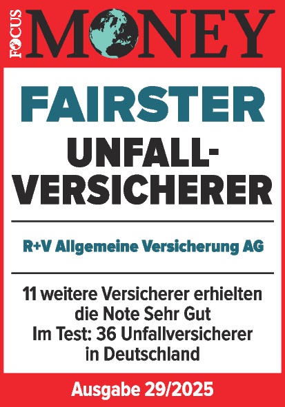 |  | Januar 2025 - FOCUS-MONEY Das Wirtschaftsmagazin FOCUS-MONEY hat in einer Studie untersucht, welche Versicherer im Leistungsfall fair mit Ihren Kunden umgehen. Die R+V Krankenversicherung erhält erneut im Bereich "PKV" die Bestnote "Sehr Gut" und gehört damit zu den "fairsten Leistungsregulierern". |